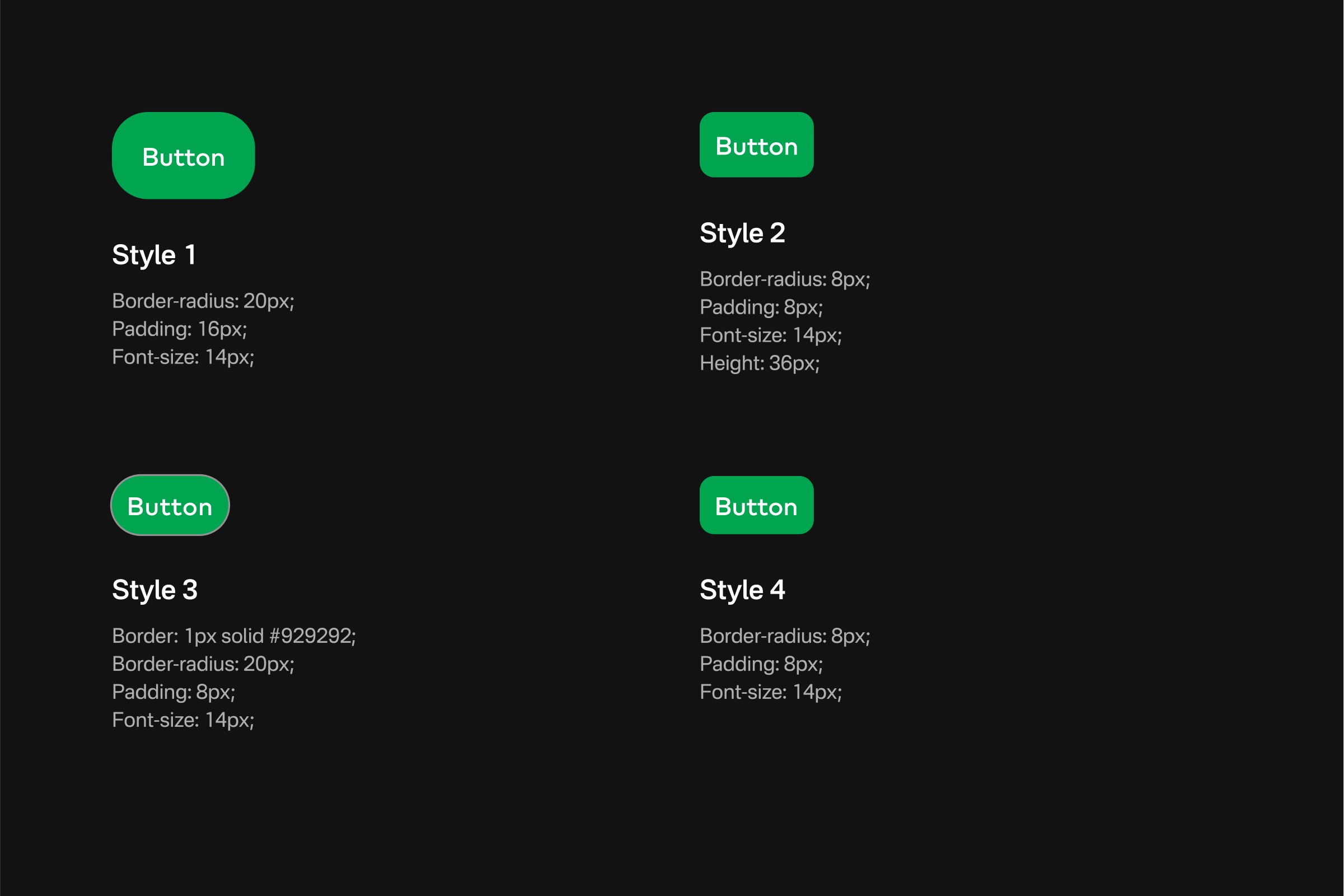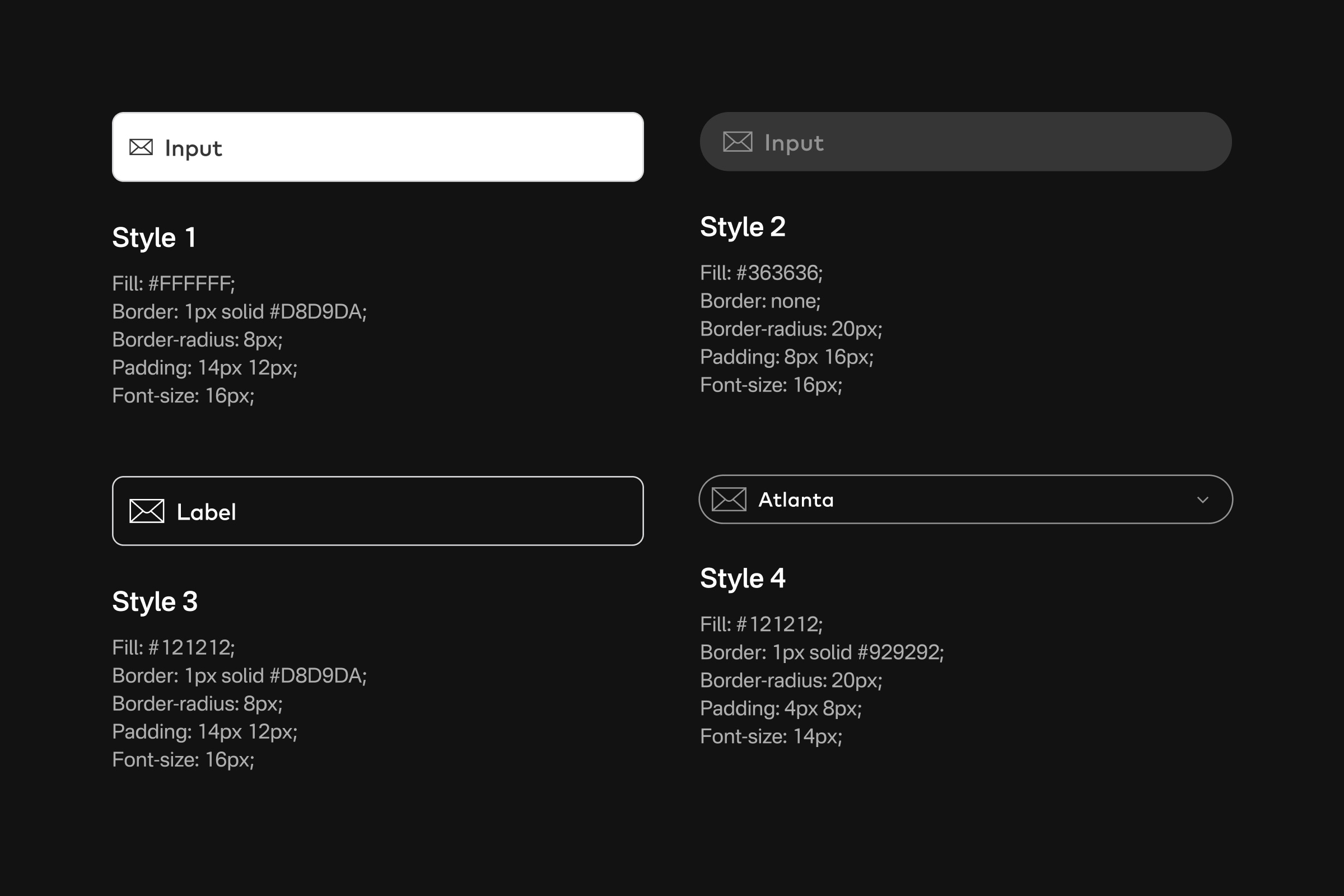 Building the design system went smoothly. I began by focusing on styles, then moved on to layout and components, and finally addressed templates and design resources. Shortly after I started, Figma released a major update introducing variables and a new dev mode. I leveraged these new features to support potential future light mode. By assigning colors, radii, and spacings to variables, I ensured components were easy to use, including many Booleans, text variables, and comprehensive documentation.